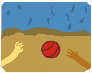 You and your friend went to the coast on a sunny day and found the perfect place to play with your ball.